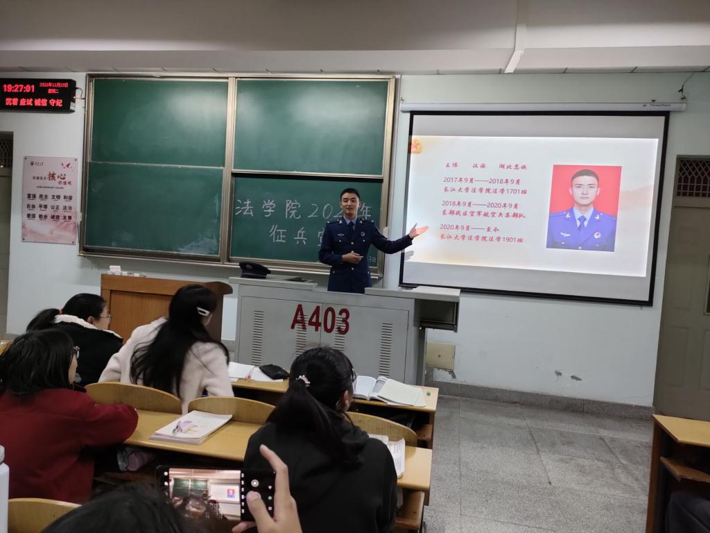 (通讯员 肖芳 李晓洁)为进一步帮助304am永利集团大一新生了解参军入伍的相关政策,鼓励老员工积极应征入伍。11月23日晚7时,公司于13教A区403和404教室举办征兵宣讲活动,本次宣讲活动由退伍军人王伟和李仲春主讲,304am永利集团全体大一新生参加。