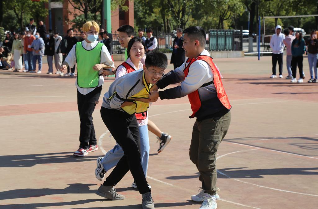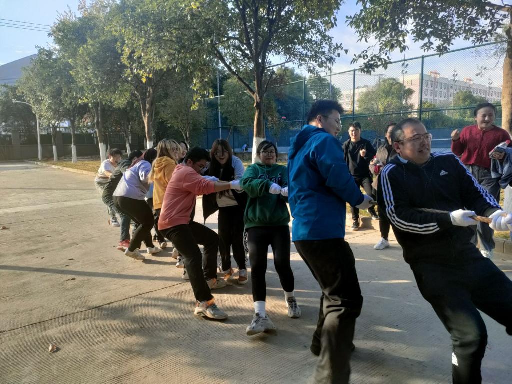 胡红霞副书记进行开幕致词,并宣布活动正式开始。各项比赛依次进行,在加油呐喊声中,整个赛场逐渐沸腾。在撕名牌、螃蟹背西瓜、疯狂躲避球等项目中,同学们激情澎湃,力争为自己的队伍争得一份荣耀。在拔河比赛中,场上参赛队员奋力拼搏,旁边观众也看得热血沸腾,现场激烈的比赛将整个活动氛围推到了高潮!在师生羽毛球友谊赛中,老师和同学们都全身心投入,比赛中不断有精彩的拦网和扣杀,展示出大家熟练的球技和青春的风采。