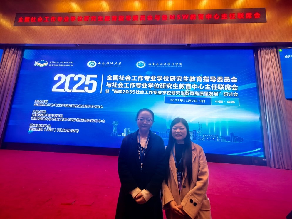 (通讯员 王蕾)2025年11月7日至9日,全国社会工作专业学位研究生教育指导委员会与社会工作专业学位研究生教育中心主任联席会暨“面向2035:社会工作专业学位研究生教育高质量发展”研讨会在西南石油大学成功召开。来自全国高校与科研机构的社会工作领域专家学者共聚一堂,围绕MSW人才培养改革、学科创新发展等核心议题展开了深入交流。