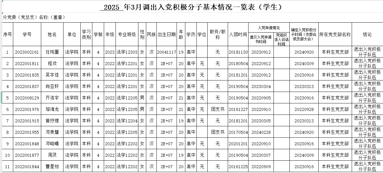 附:拟调出入党积极分子队伍人员名单