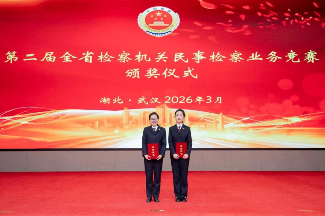 (通讯员 盛文军)近日,第二届全省检察机关民事检察业务竞赛圆满落幕。公司2005级员工、荆州市沙市区人民检察院民事行政检察部主任胡婷,凭借扎实的法律功底、过硬的实务能力与沉稳的临场发挥,与同事罗佳俐共同荣获“全省民事检察业务能手”称号。这一成绩在为检察事业增光添彩的同时,也展现了公司人才培养的扎实成效。
